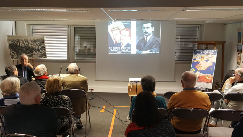 Notre ami Pierre Jarrige, spécialiste reconnu de l'aviation en Algérie nous a présenté le 18 novembre "Latecoère en Méditerranée "passionnante évocation de cette véritable épopée que fut l'histoire de cette entreprise dont les lignes aériennes ont sillonné un immense espace de la Méditerranée au Sahara. Pour sa part André Dumas a retracé la vie et la carrière de Marcel Cerdan, éphéméride du jour.