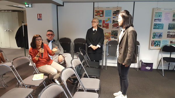 Piedes noirs français à part entière ou entièrement à part Le samedi 13 mai nous avons eu le plaisir de recevoir Emma Jie Jia professeur de français à l'université de Xian en Chine et actuellement enseignante de chinois à l'institut Confucius de Pau . Elle nous a présenté son livre, qui est aussi sa thèse universitaire, "Pieds-noirs français à part entière ou entièrement à part" , une conférence qui a beaucoup touché le public présent qui lui a su gré de l'intérêt qu'elle porte à notre communauté . Qu'elle soit vivement remerciée pour son talent et sa gentillesse . En préambule Ghislaine Delmond avait évoqué lors de l'éphéméride la personnalité d'Henri Borgeaud