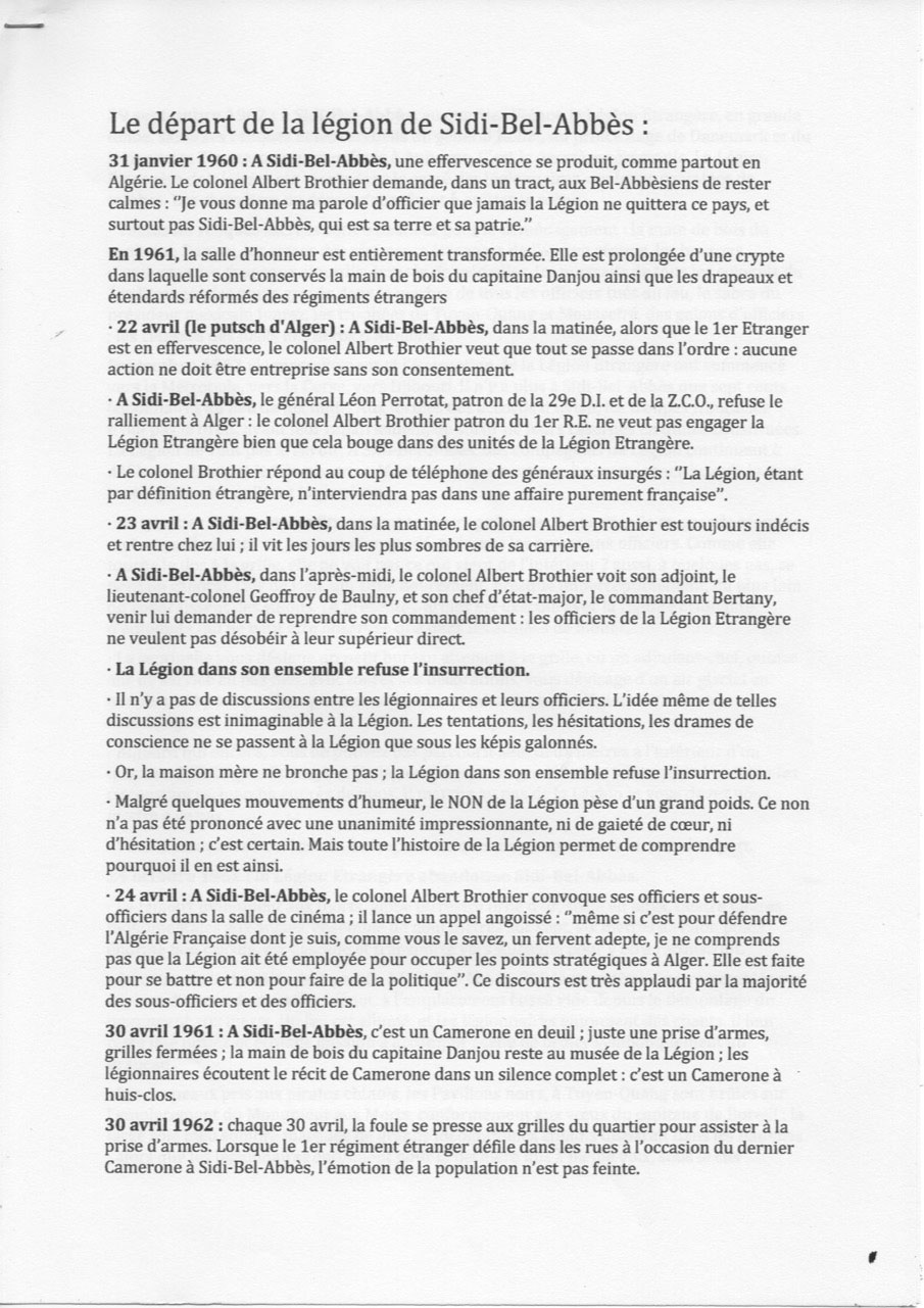 En ouverture de notre réunion une minute de silence a été observée à la mémoire de notre ami Pierre Jean décédé cet été. Ghislaine Delmond a évoqué la personnalité attachante de Pierre, administrateur dévoué, ô combien actif de notre cercle, apprécié de tous et dont l'absence laisse un grand vide. Merci à lui pour ce qu'il a été et pour ce qu'il a fait "Le problème des archives en Algérie ",c'est le sujet qu'a traité Andrée Dijou-Czerny, responsable régionale du GAMT (Généalogie Algérie, Maroc, Tunisie) devant les algérianistes toulousains ce 19 octobre. Dans un exposé passionnant et instructif elle a mis en évidence les questions (Histoire, vérité, identité, généalogie) liées au sort des archives des français d'Algérie qui sont devenues un enjeu politique entre la France et l'Algérie. Une conférence qui a suscité un grand intérêt et une utile prise de conscience d'un problème trop longtemps éludé. En préambule Ghislaine Delmond à évoqué avec émotion le départ de la Légion Étrangère de Sidi Bel Abbés le 24 octobre 1962,éphéméride du jour.