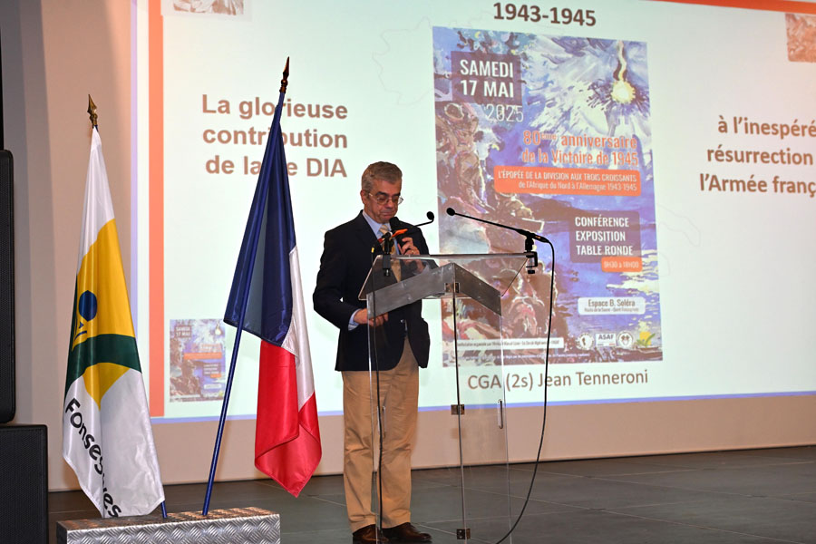 Ce samedi 17 mai, le cercle de Toulouse, rompant avec le cycle de ses conférences mensuelles, s'est déplacé à Quint Fonsegrives où sa présidente Ghislaine Delmond, le conseil d'administration et nombre de ses adhérents venaient encourager et soutenir l'initiative de l'Association de Soutien aux Armées de la France, de l'Association Marcel Lizon et du Cercle Algerianiste avec le concours de la municipalité de Quint Fonsegrives dans un hommage aux soldats de la 3eme DIA héros de l'épopée qui a conduit à la victoire de 1945. Il convient de noter la présence à cette journée de la présidente du cercle national algérianiste Mme Simon-Nicaise et le rôle essentiel de notre ami Roger Vétillard dans le choix et l'organisation de cette manifestation. La matinée fut consacrée à une conférence illustrée de projections sur l'histoire de la 3eme DIA par Jean Tenneroni, contrôleur général des armées tandis que l'après-midi une table ronde menée par Jacqueline Curato, présidente du cercle algérianiste de Montauban, permettait à des fils et filles de combattants de cette glorieuse division d'évoquer le parcours de leurs pères, sous les ordres de leurs chefs prestigieux : Juin, de Monsabert et de Lattre jusqu'à Berlin. Durant toute la journée on a pu admirer l'exposition de documents (panneaux illustrant les campagnes de Tunisie, de France et d'Allemagne fournis par l'ONAC*) et d'oeuvres relatifs à cette période et rendre visite aux stands (dont celui du cercle toulousain) chargés de les informer et de les instruire (maquettes, livres, revues). Évidemment le cercle algérianiste de Toulouse avait le sien en bonne place. En fin de compte une belle leçon d'histoire et un salutaire exercice de mémoire, deux tâches auxquelles le Cercle s'adonne depuis ses origines. Christian Lapeyre. *ONAC: Office National des Anciens Combattants Un hommage à la 3ième D.I.A (cliquez pour voir la vidéo) et le compte rendu de la Dépêche du midi