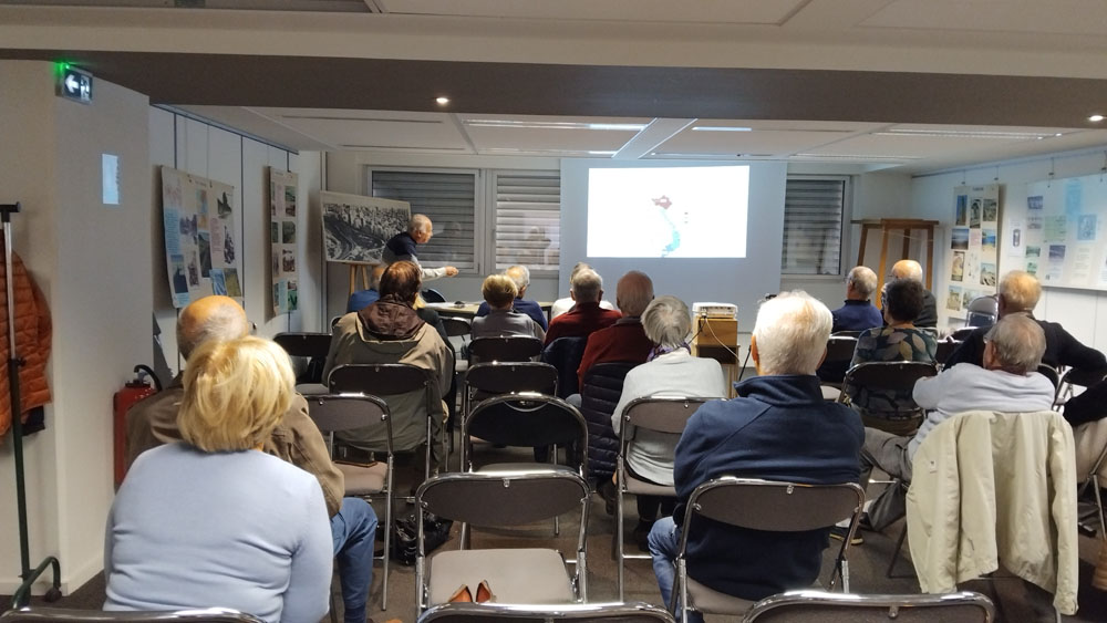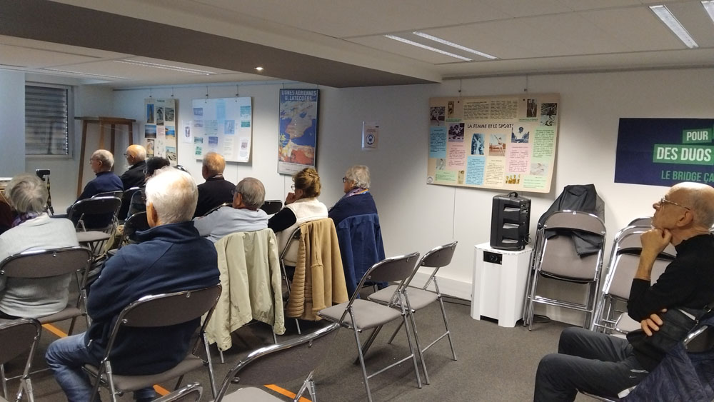 Pour cette journée consacrée au sport en Algérie française, nous avons eu droit pour commencer à une projection vidéo des événements sportifs qui ont marqué l'histoire du sport en Algérie. Pendant quelques minutes nous avons pu revivre la victoire de Marcel Cerdan pour le titre de champion du monde contre Tony Zale le 21 septembre 1948 et ensuite des extraits de la fin du marathon de Melbourne en 1956 où Alain Mimoun gagna la médaille d'or. Ensuite nous avons pu découvrir en consultant l'encyclopédie Lapeyre ce qu'avait été le sport en Algérie. Christian nous a, pendant 1h 30, rappelé combien notre pays avait été riche en sportifs de haut niveau. Et comme toujours avec Christian l'ombre d'Albert Camus est présente. Il nous relate la passion de Camus pour le R.U.A et ses références au sport dans nombre de ses livres. A travers sa causerie, il nous a rappelé que toutes les disciplines sportives se pratiquaient en Algérie sans exceptions puisque à côté des plus connues, football, natation, athlétisme, boxe, cyclisme, on trouvait aussi du rugby et du hockey sur gazon. Et toujours sur un ton humoristique il nous a cité des noms d'associations aux noms aussi imagées qu'insolites. En résumé, 1H30 que nous n'avons pas vu passer. J.Salvano